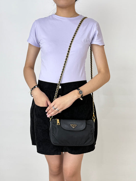 Prada 1BH085 Tessuto Nylon Convertible Clutch Sling Bag