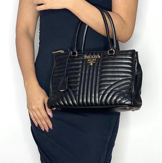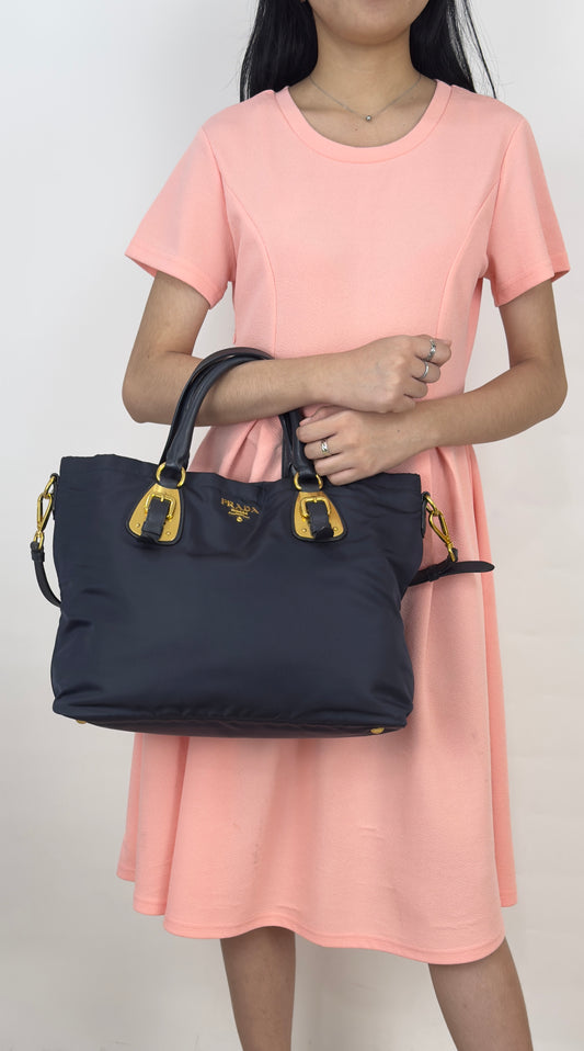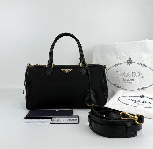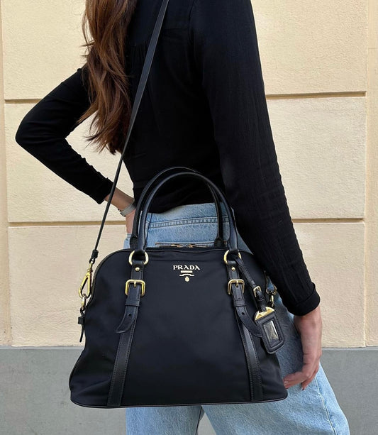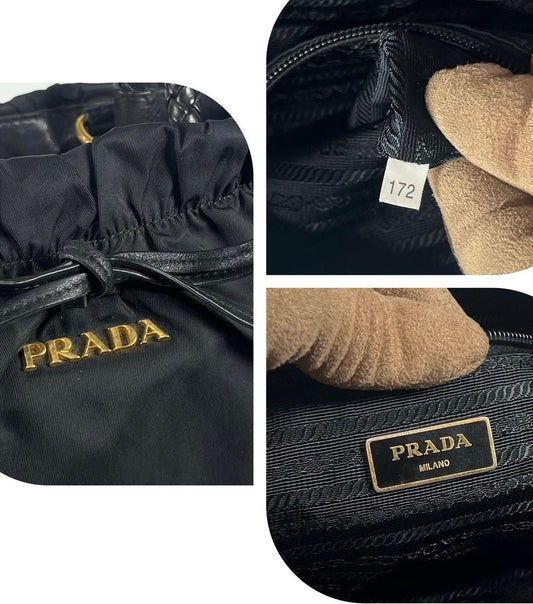 Prada Black Nylon and Leather Bauletto Satchel Bag