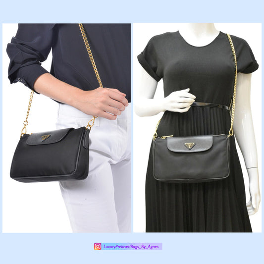Prada 1BH085 Tessuto Nylon Convertible Clutch Sling Bag