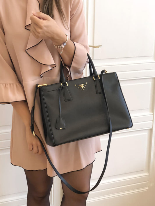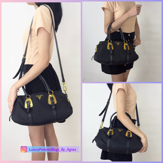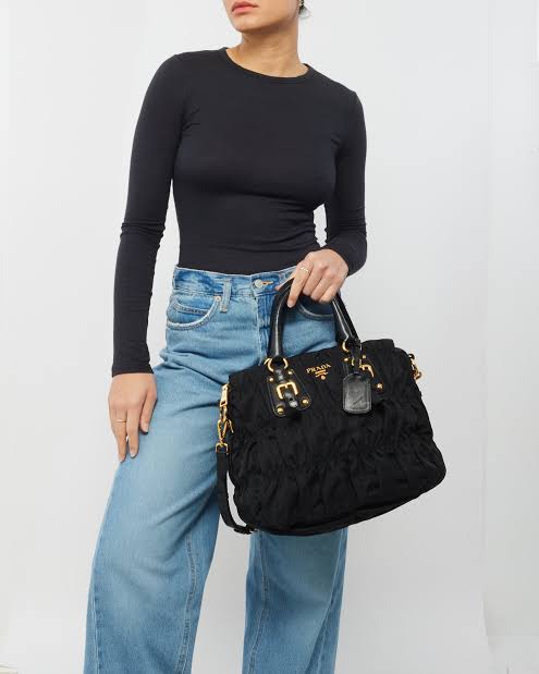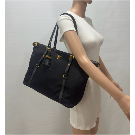 Prada Black Tessuto Nylon And Saffiano Leather Tote Bag