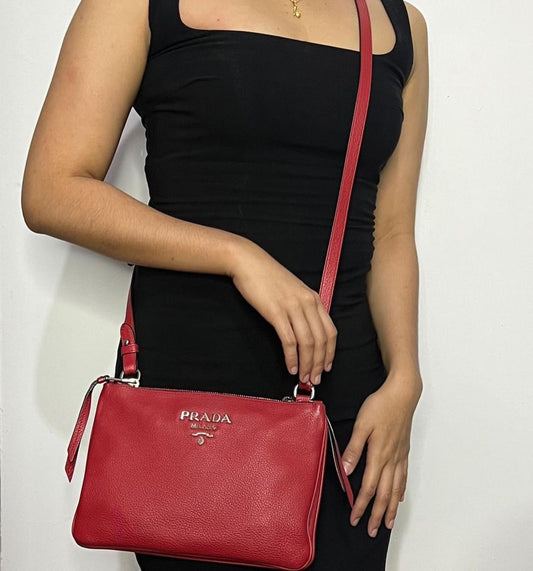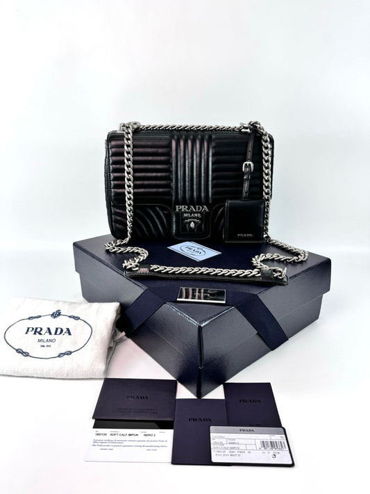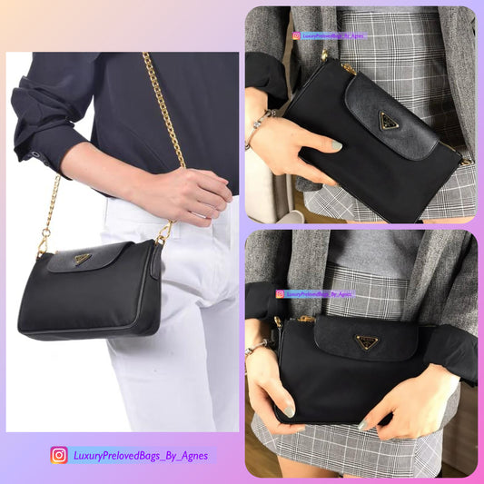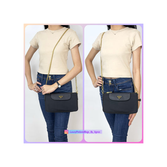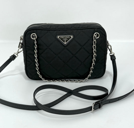 Prada Black Tessuto Nylon Saffiano Chain Crossbody Bag