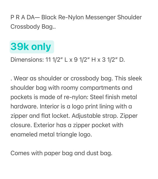 Prada Black Re Nylon Messenger Shoulder Crossbody Bag