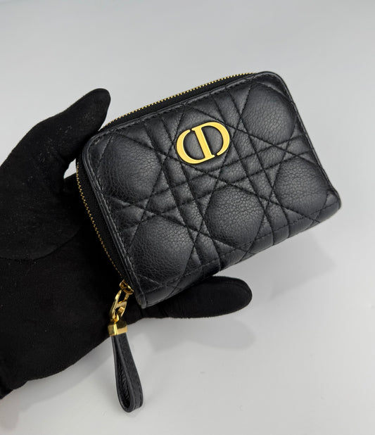 Dior Caro Scarlet Wallet In Black Supple Cannage Calfskin