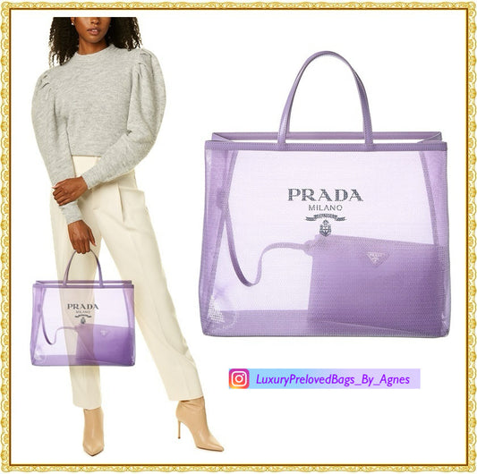 Prada Mesh Paillettes Spazzolato Logo Shopping Tote Lilium