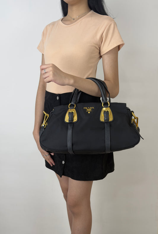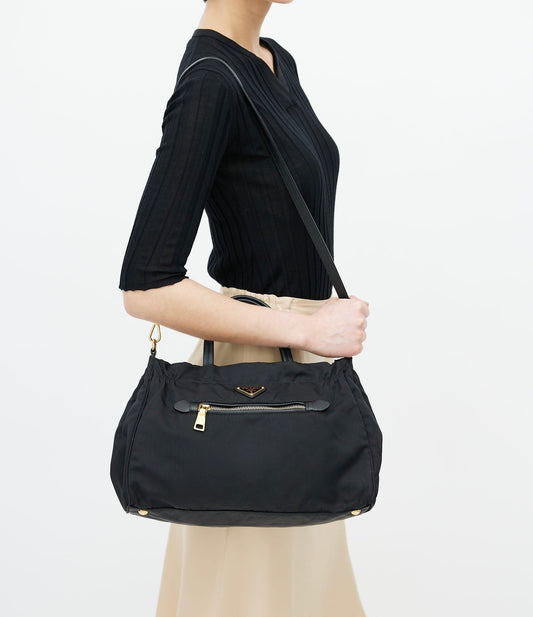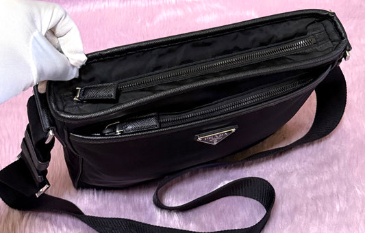 Prada Saffiano Black Tessuto Nylon Shoulder Bag