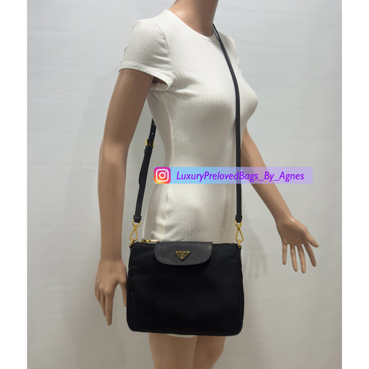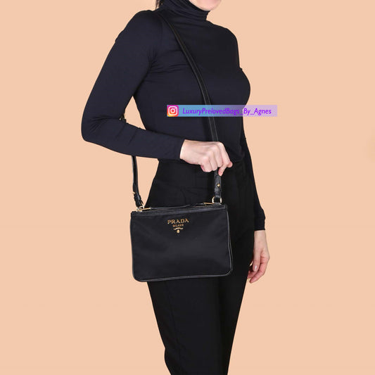 Prada Tessuto Nylon Soft Calf Double Zip