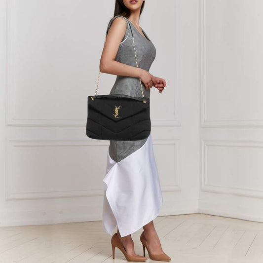 Saint Laurent Loulou Puffer Wool and Leather Shoulder Bag