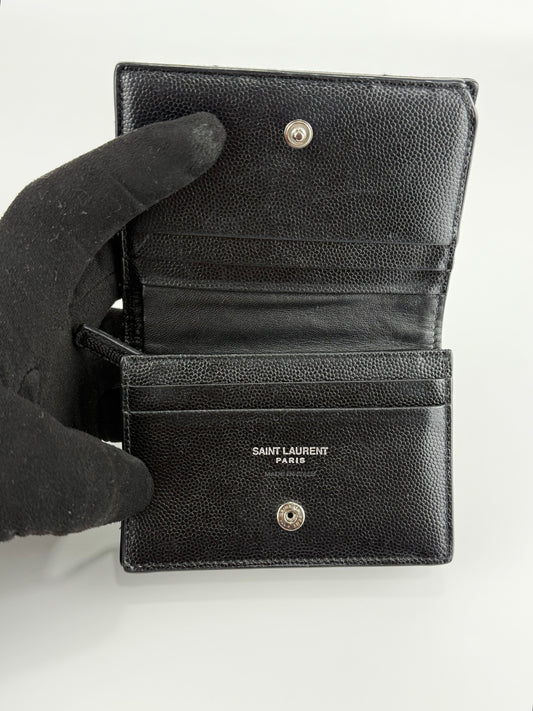 YSL BLACK GRAIN DE POUDRE MONOGRAM BIFOLD WALLET CARD CASE