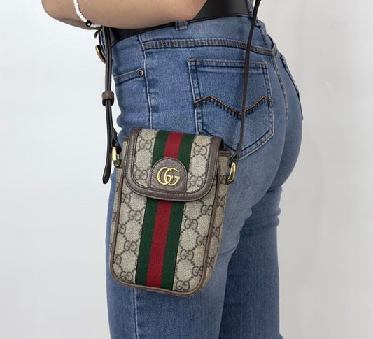 Gucci Monogram Medium Half Moon Hobo Dark Brown
