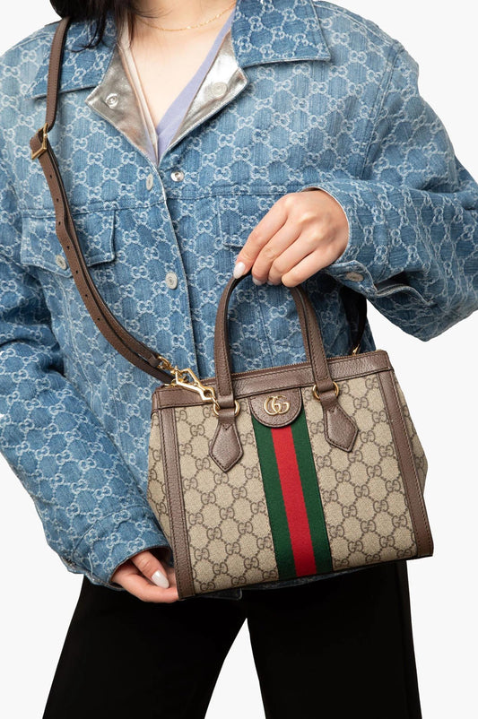 Gucci Ophidia Small Tote Bag in Beige/Ebony GG Supreme