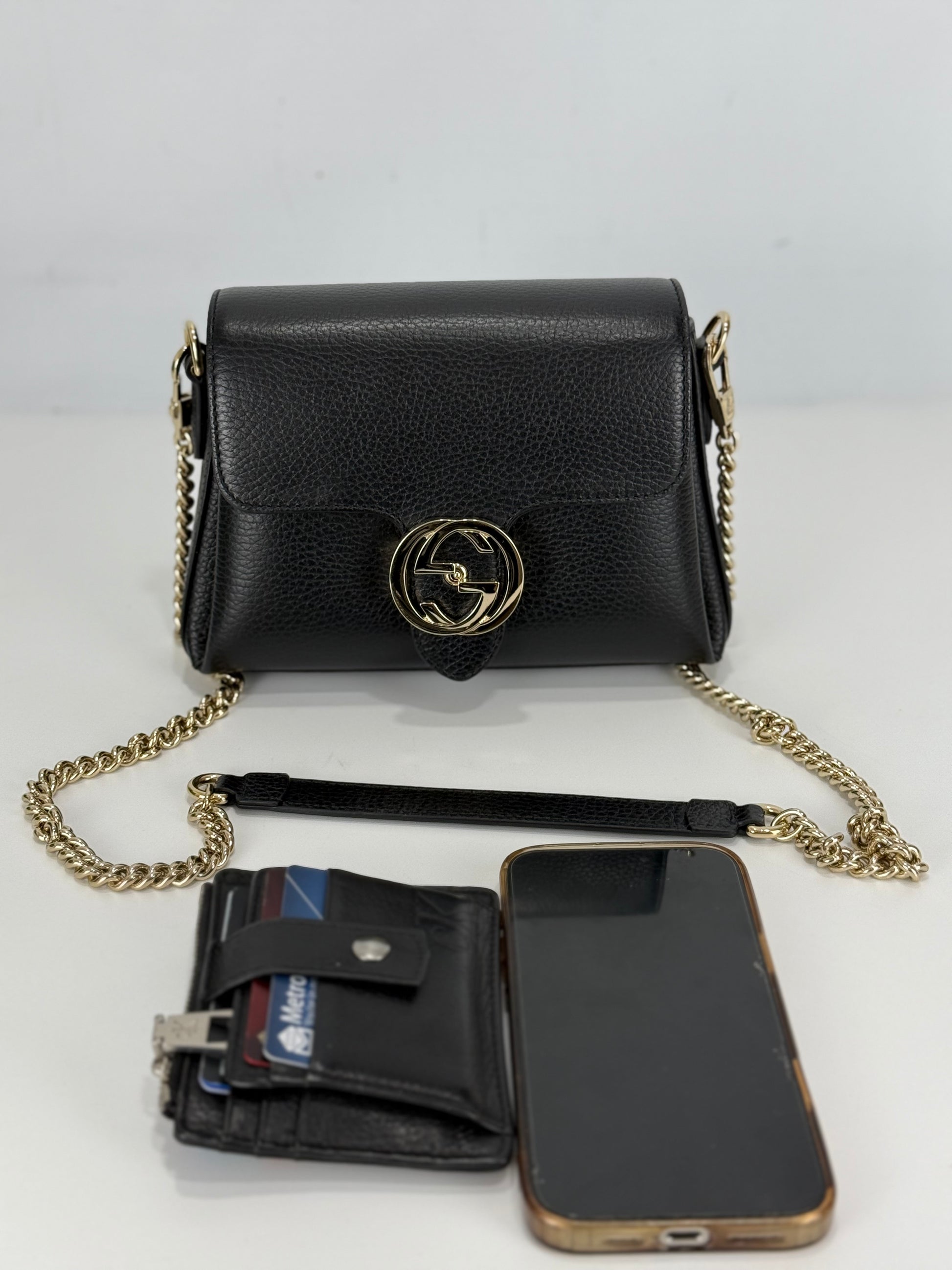 Gucci Interlocking G Black Leather Chain Shoulder Bag