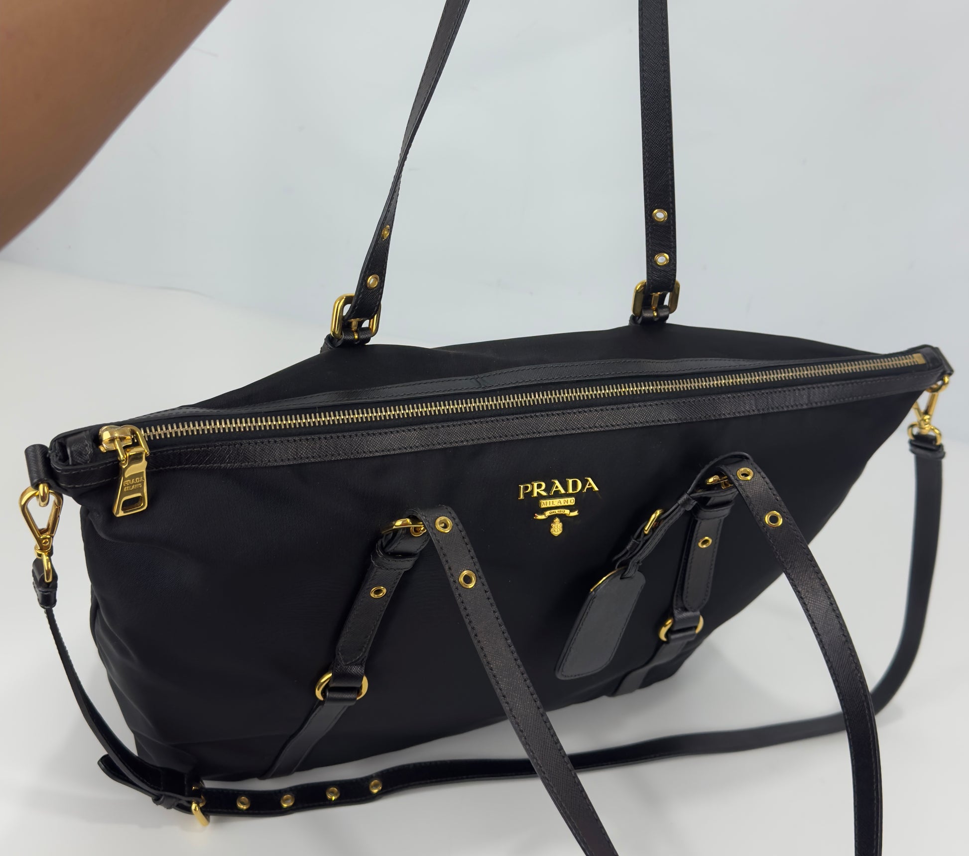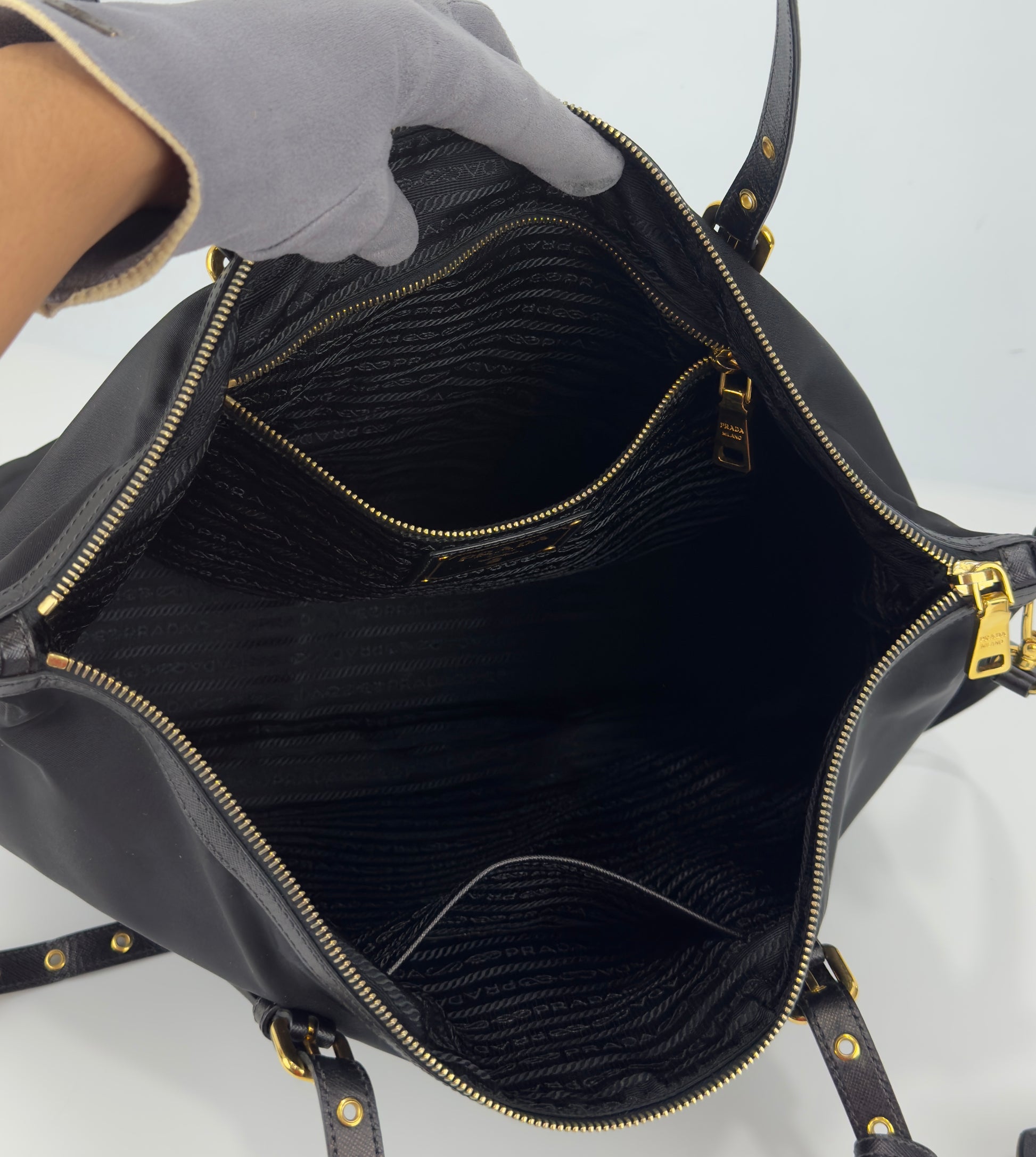Prada Black Tessuto Nylon And Saffiano Leather Tote Bag