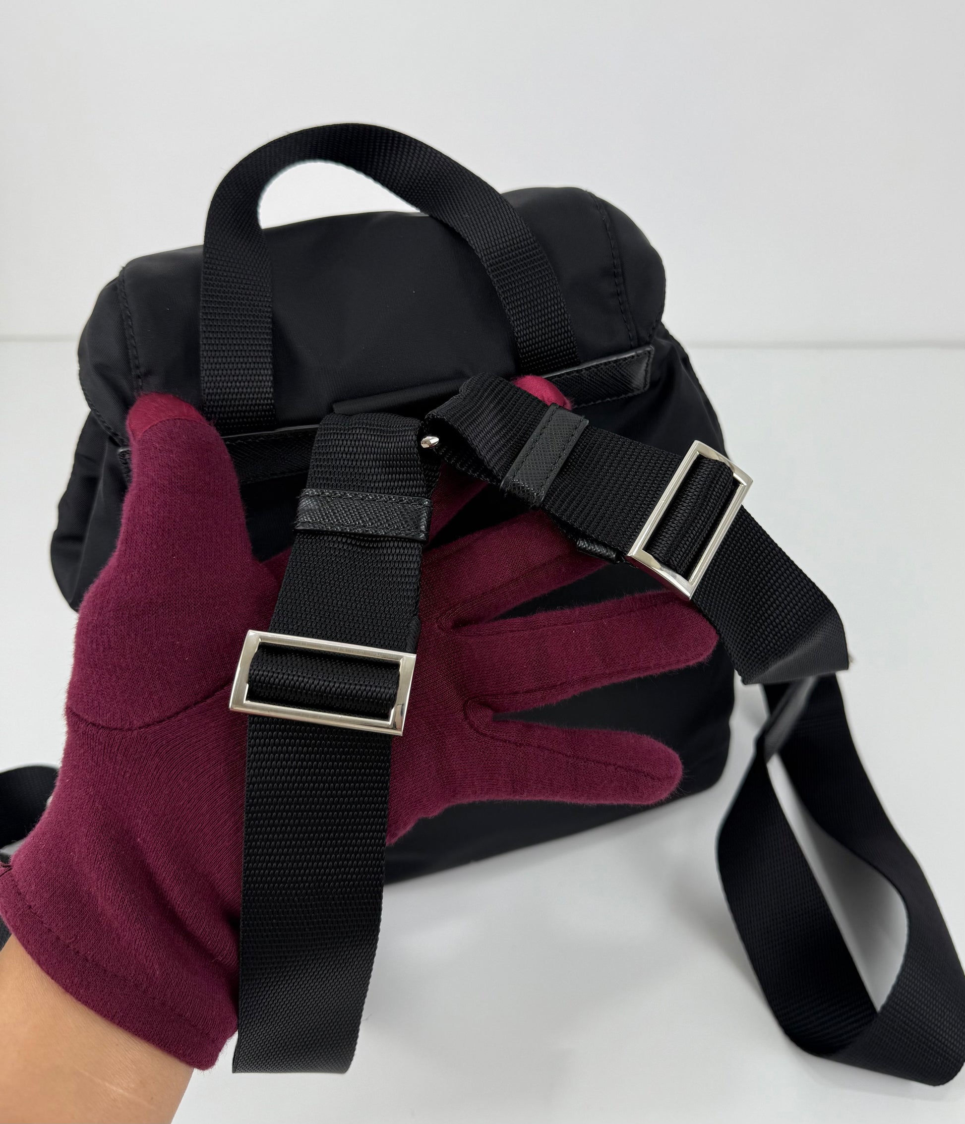 Prada Enamel Triangle Logo Re-Nylon Small Backpack