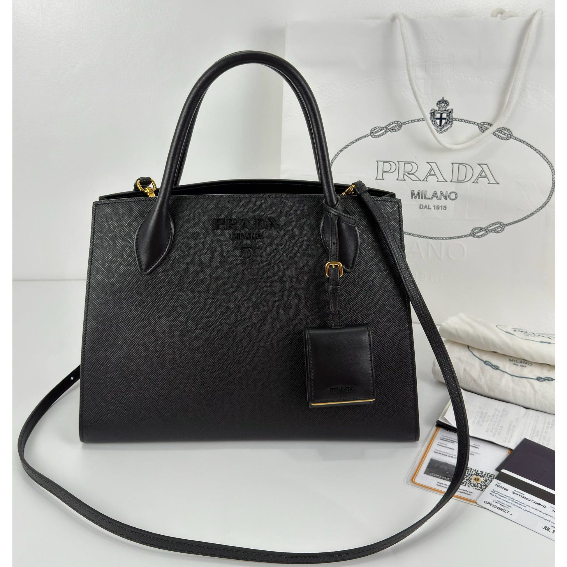 Prada Monochrome Medium Saffiano Leather Black Bag