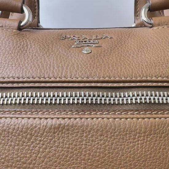 +PRADA**Vitello Daino Leather Zip Tote Bag BL0805 in in Cannela color