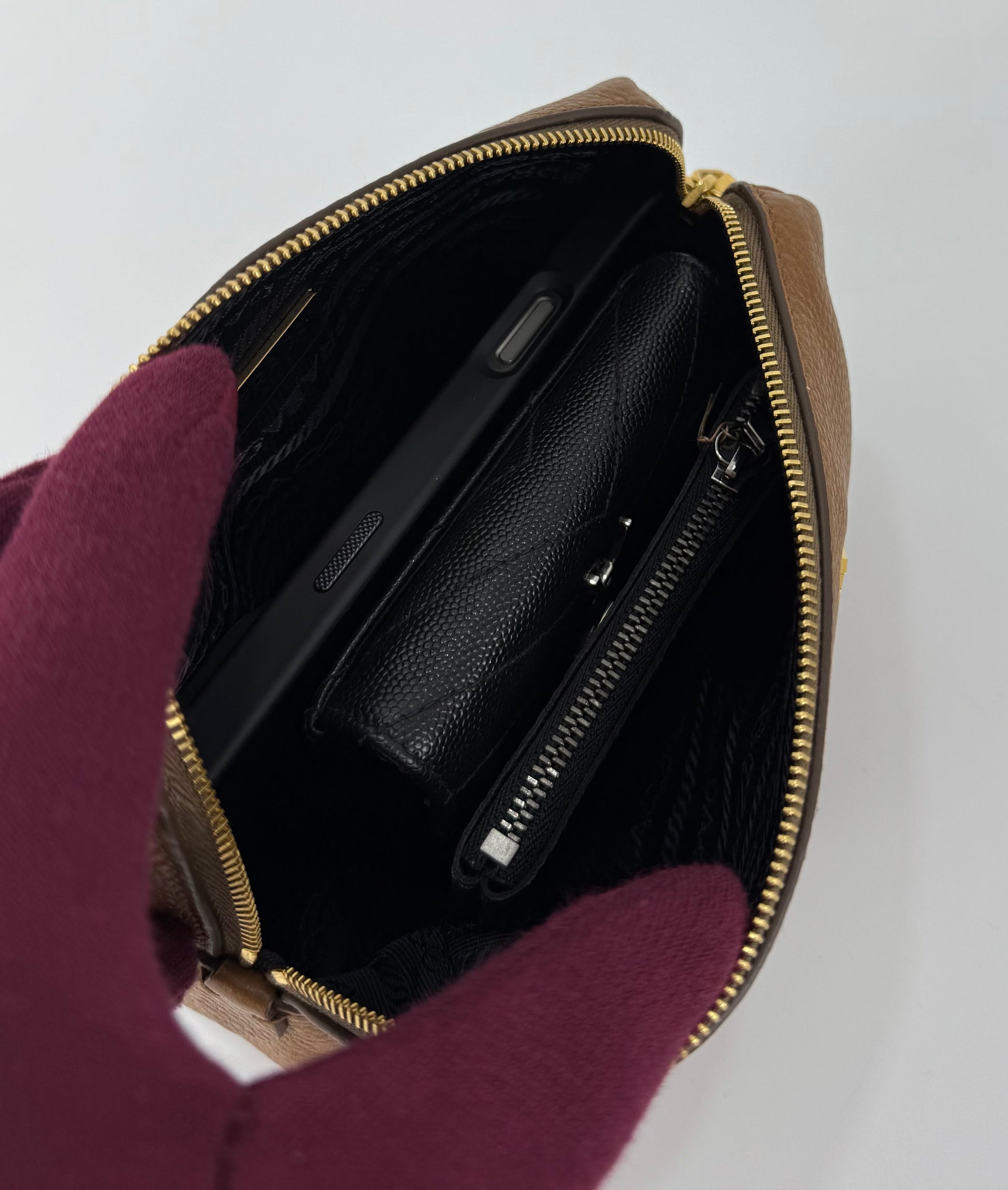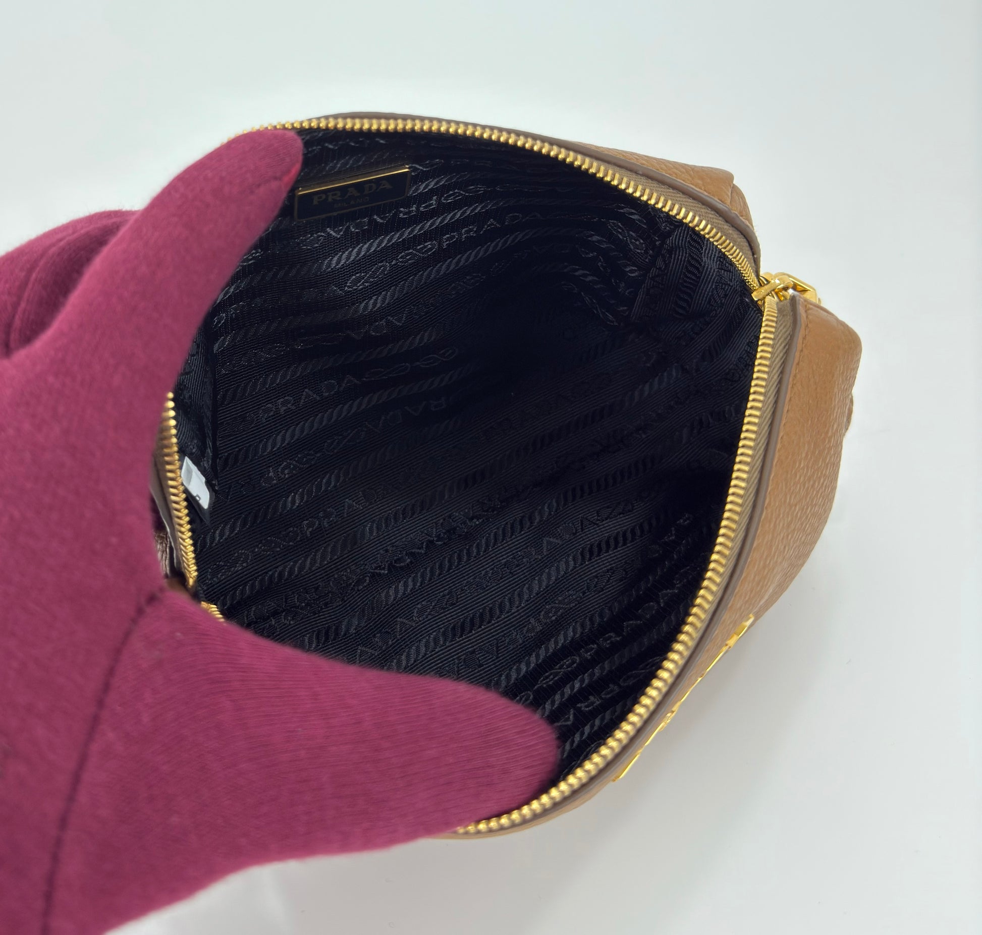 Prada Vitello Daino Canella Brown Leather Cosmetic Pouch