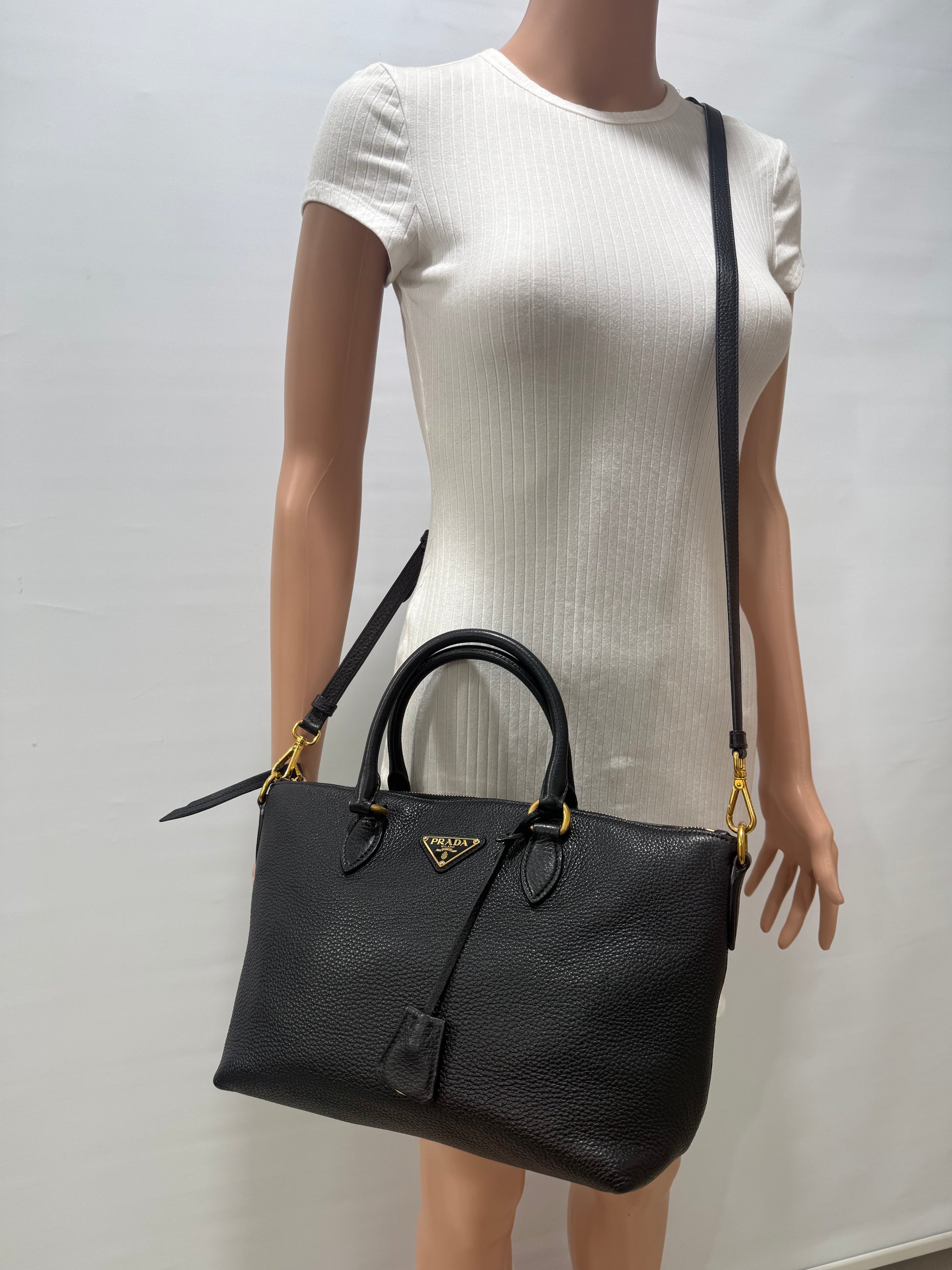 Prada Vitello Phenix Leather Top Handle Crossbody Bag